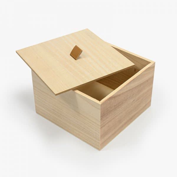 κουτί ξύλινο φυσικό με δερμάτινη λεπτομέρεια 18εκ. x 18εκ. x 12εκ