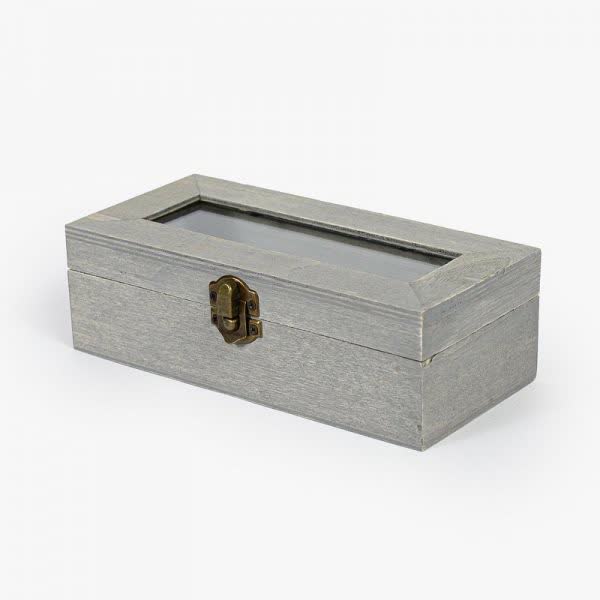 Ξύλινο κουτί με τζάμι γκρι 19 εκ. x 9 εκ. x 6 εκ.