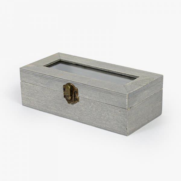 Ξύλινο κουτί με τζάμι γκρι 22 εκ. x 12 εκ. x 7,5 εκ.