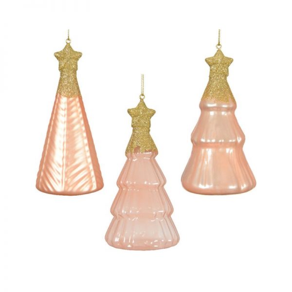 Κρεμαστό Χριστουγεννιάτικο δέντρο σομόν με χρυσό γκλίτερ σε 3 σχέδια 8 εκ. (1 τεμ.)