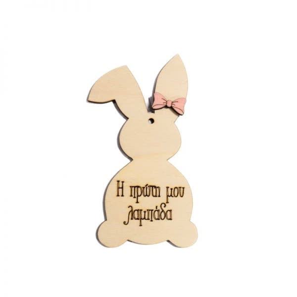 Λαγουδάκι ξύλινο η πρώτη μου λαμπάδα ροζ φιόγκος 12 εκ. (1 τεμ.)