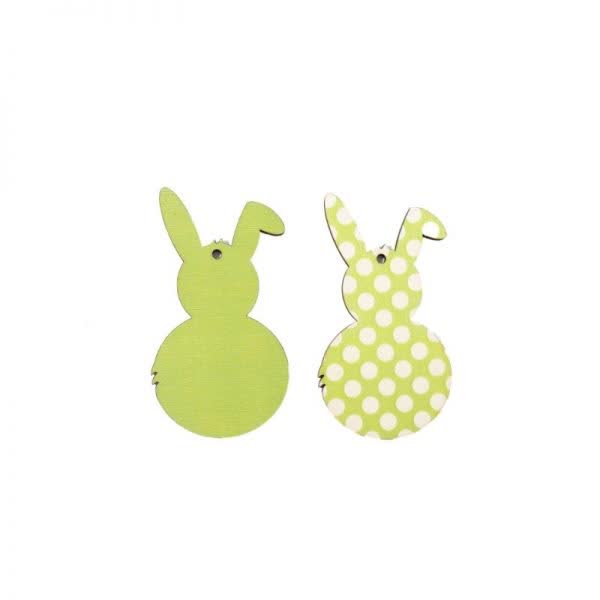 Λαγουδάκια ξύλινα λαχανί / πουά με τρύπα 9,5 εκ. (2 τεμ.)