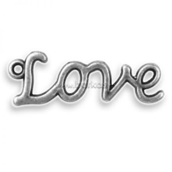 Love μεταλλικό κρεμαστό ασημί 3εκ. x 1εκ. (50τμχ.)