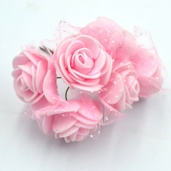Λουλούδι τριαντάφυλλο ροζ με τούλι 36τμχ.