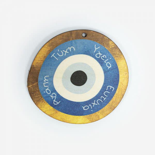Μάτι μπλε με ευχές ξύλινο με τρύπα