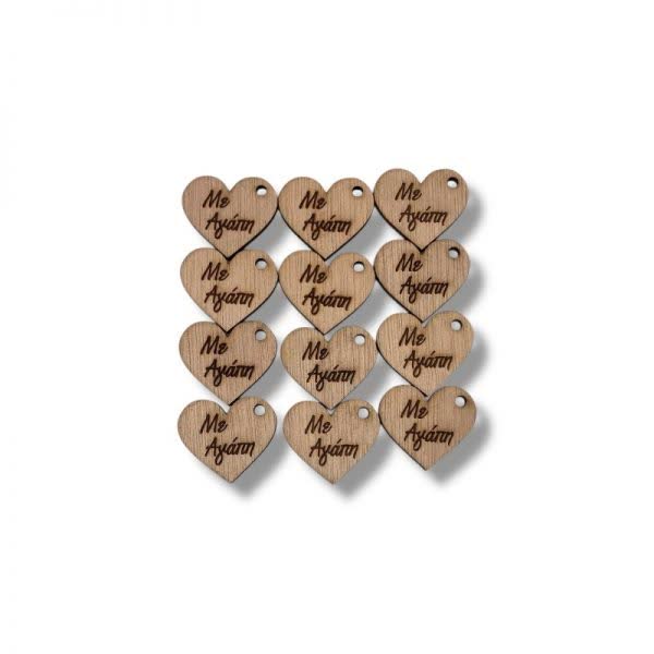 Με Αγάπη Ξύλινη Καρδούλα 3,5εκ. με τρύπα (12τεμ.)