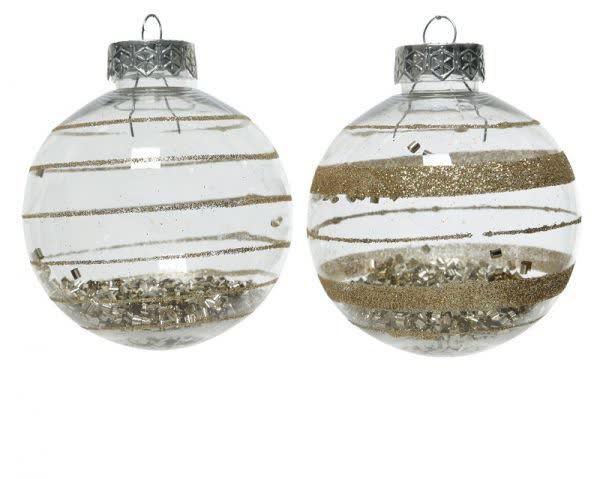 Μπάλα Χριστουγεννιάτικη διάφανη με χρυσόσκονη χρυσή και χάντρες χρυσές εσωτερικά 8 εκ. (1 τεμ.)