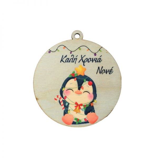 Μπάλα ξύλινη Καλή Χρονιά Νονέ με τρύπα