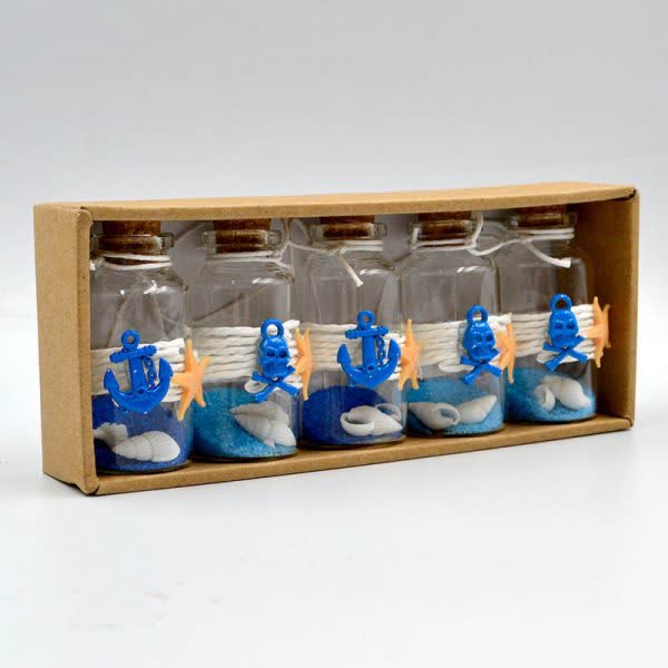 Μπουκαλάκια γυάλινα καλοκαιρινά στολισμένα (5 τεμ.)