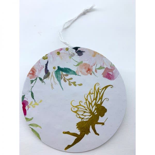 Νεράιδα με λουλούδια σε ξύλινο κρεμαστό, 8cm (1ΤΜΧ)