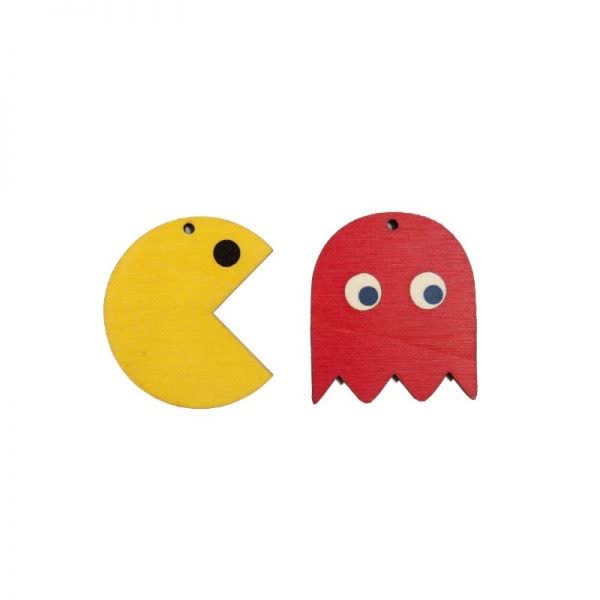 Pacman – φαντασματάκι ξύλινο με τρύπα 6 εκ. (2 τεμ.)