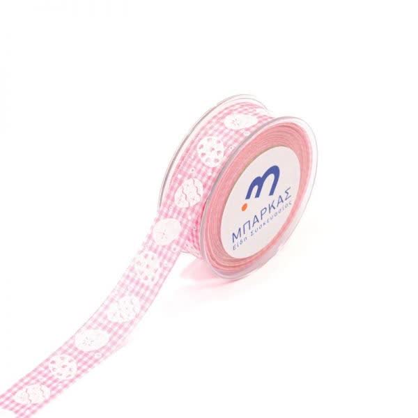 Πασχαλινή κορδέλα καρό ροζ με αυγά λευκά
