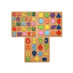 Πάζλ ξύλινο εκπαιδευτικό σε 3 σχέδια (αριθμοί, γράμματα, σχήματα)