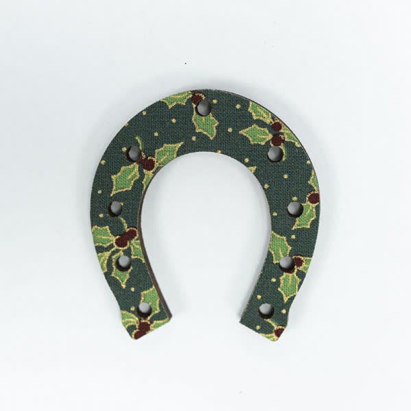 Πέταλο Ξύλινο με ύφασμα πράσινο και χρυσές λεπτομέρειες και τρύπα