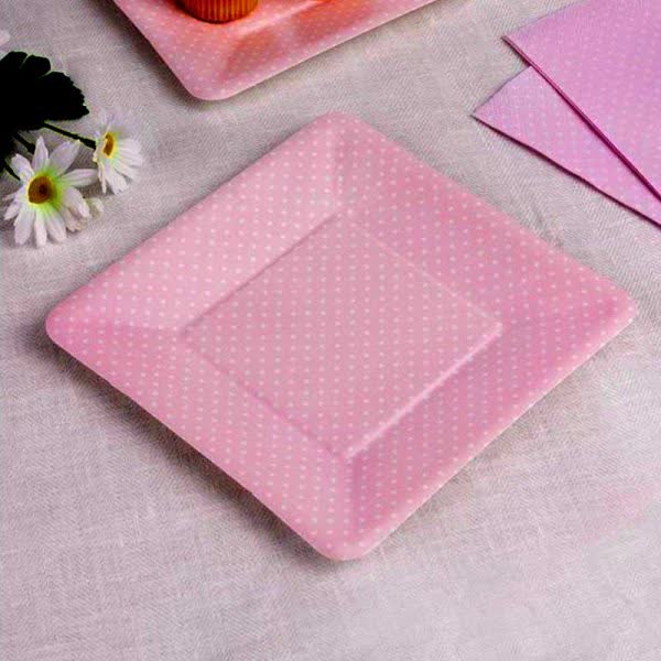 Πιάτα τετράγωνα πουά ροζ 19εκ. – 8τμχ.