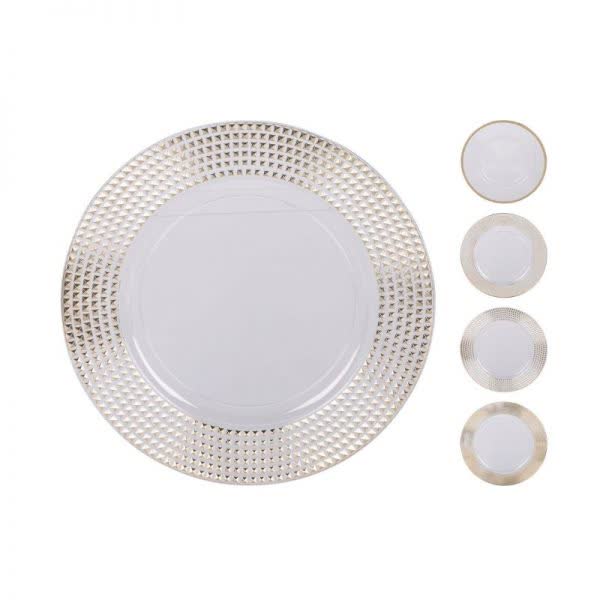 Πιατέλα μελαμίνης σε 4 σχέδια λευκή με χρυσές λεπτομέρειες 33 εκ. (1 τεμ.)
