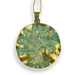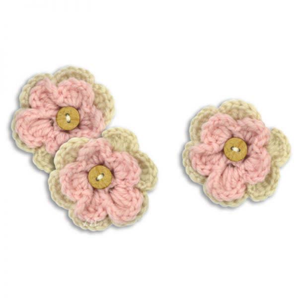 Πλεκτό λουλούδι με κουμπί εκρού χρώμα.