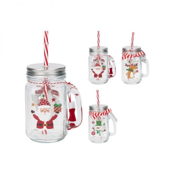 Ποτηράκι γυάλινο με καλαμάκι σε 4 σχέδια 450 ml. (1 τεμ.)