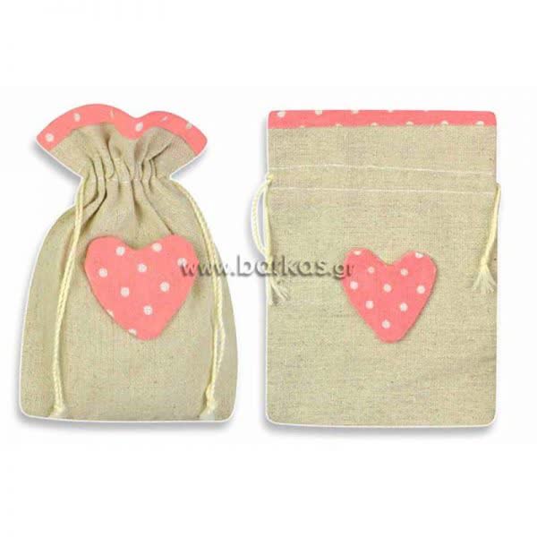 Πουγκί καρδιά πουά ροζ. Διάσταση 11εκ. x 15εκ. Συσκευασία 10τμχ.
