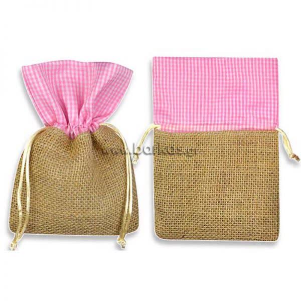 Πουγκί λινάτσα καρώ ροζ.rΔιάσταση: 12,5εκ. x 18εκ.rΣυσκευασία 10τμχ.