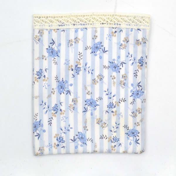 Πουγκί υφασμάτινo σιέλ με λουλούδια και δαντέλα 12εκ Χ 15εκ