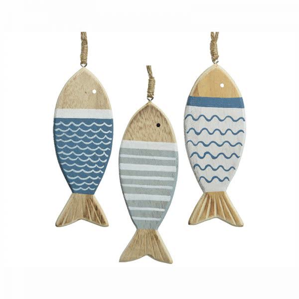 Ψαράκι ξύλινο κρεμαστό σε 3 σχέδια 15 εκ. (1 τεμ.)