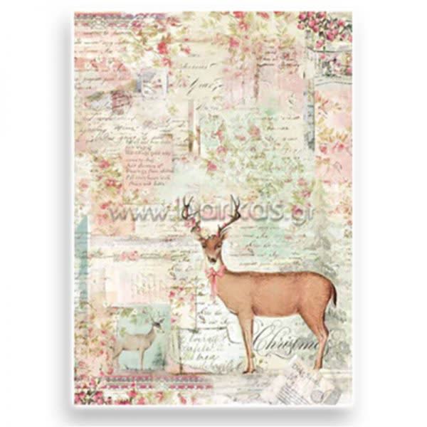 Ριζόχαρτο Stamperia A4 Pink Christmas reinder.