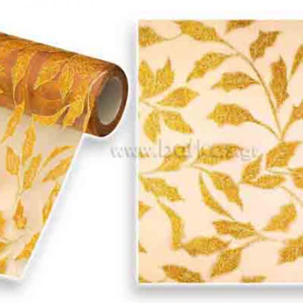 Ρολό ύφασμα χριστουγεννιάτικο φύλλο στράς βουάλ χρυσό.