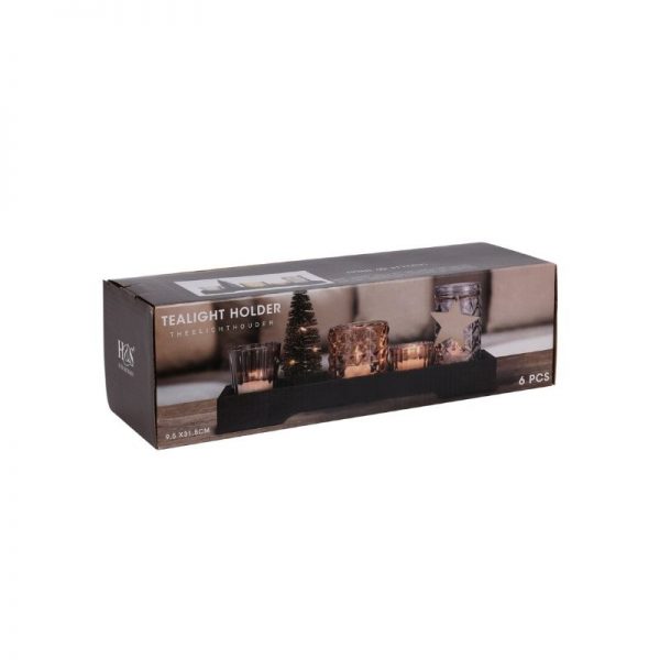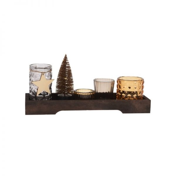 Σετ δώρου με δίσκο ξύλινο, κηροπήγια και δεντράκι led