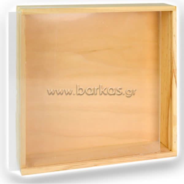 Στεφανοθήκη ξύλινη τετράγωνη με καπάκι από Plexiglass 22 εκ. x 22 εκ. (1 τεμ.)
