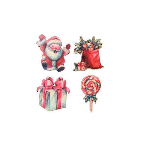 Στοιχεία Χριστουγεννιάτικα ξύλινα σε διάφορα σχέδια με τρύπα 5 εκ. (4 τεμ.)