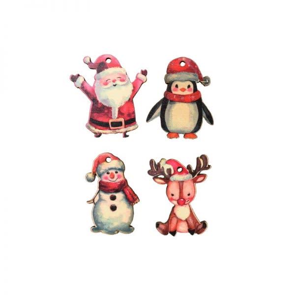 Στοιχεία Χριστουγεννιάτικα ξύλινα σε διάφορα σχέδια με τρύπα 5 εκ. (4 τεμ.)