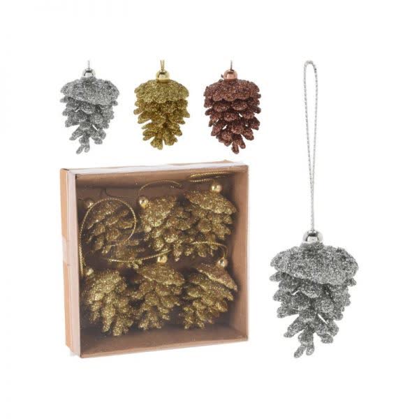 Στολίδι κουκουνάρια κρεμαστό σε 3 χρώματα 4 εκ. (6 τεμ.)