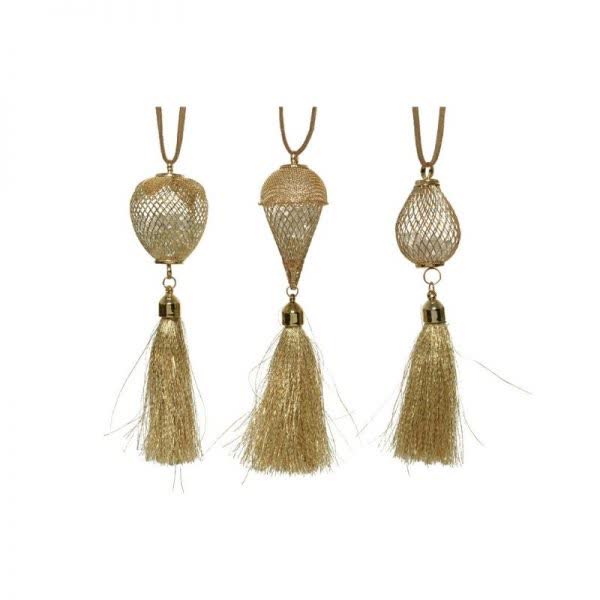 Στολίδι Χριστουγεννιάτικο μεταλλικό χρυσό με φούντα σε χρυσό χρώμα και 3 σχέδια