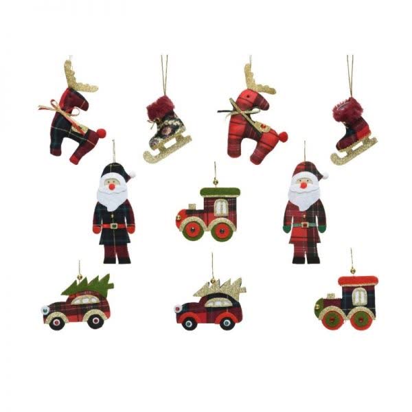 Στολίδι Χριστουγεννιάτικο τσόχινο με καρώ ύφασμα σε 10 σχέδια 13 εκ. (1 τεμ.)