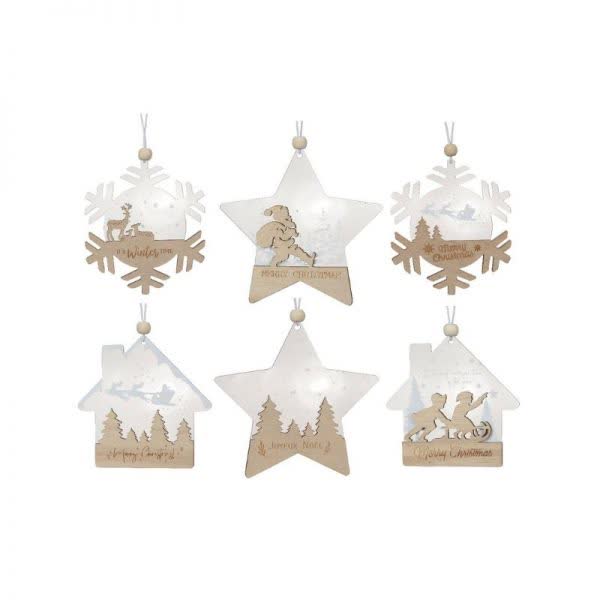 Στολίδι Χριστουγεννιάτικο ξύλινο με plexiglass σε 6 σχέδια 10 εκ. (1 τεμ.)