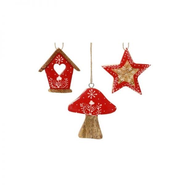 Στολίδι Χριστουγεννιάτικο ξύλινο με σμάλτο σε 3 σχέδια (σπιτάκι, μανιτάρι, αστέρι)