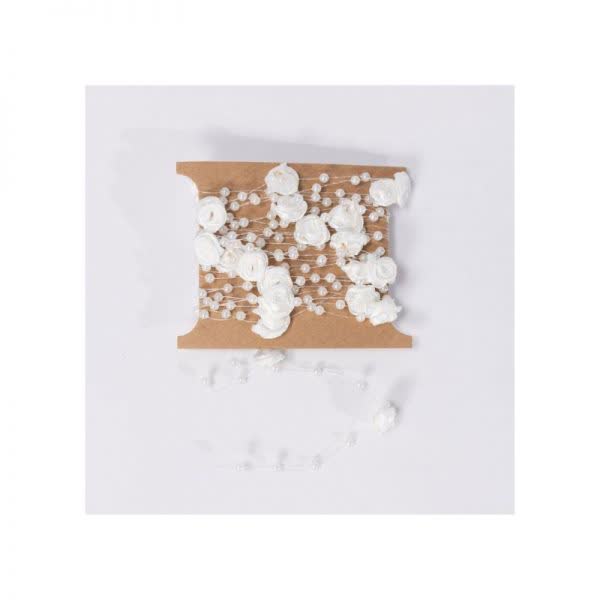 Τρέσα με τριανταφυλλάκι υφασμάτινο και πέρλες λευκό 5 m. (1 τεμ.)
