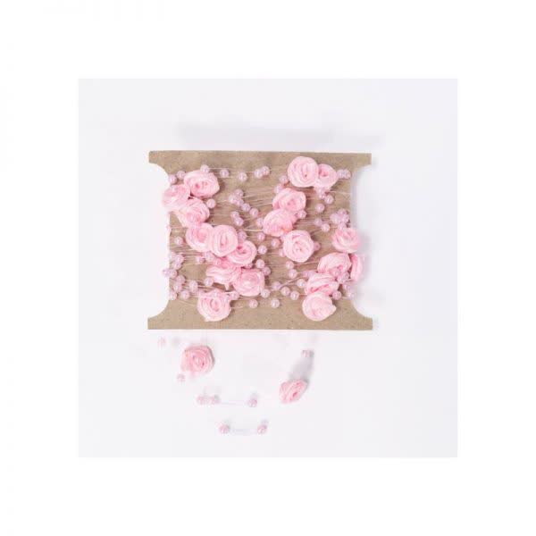 Τρέσα με τριανταφυλλάκι υφασμάτινο και πέρλες ροζ 5 m. (1 τεμ.)