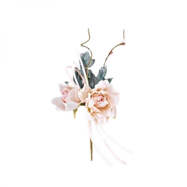 Τριαντάφυλλα σύνθεση με φύλλα και γκλίτερ εκρού 18 εκ. (1 τεμ.)