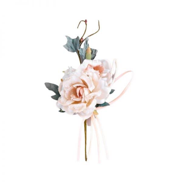 Τριαντάφυλλα σύνθεση με φύλλα και γκλίτερ εκρού 18 εκ. (1 τεμ.)