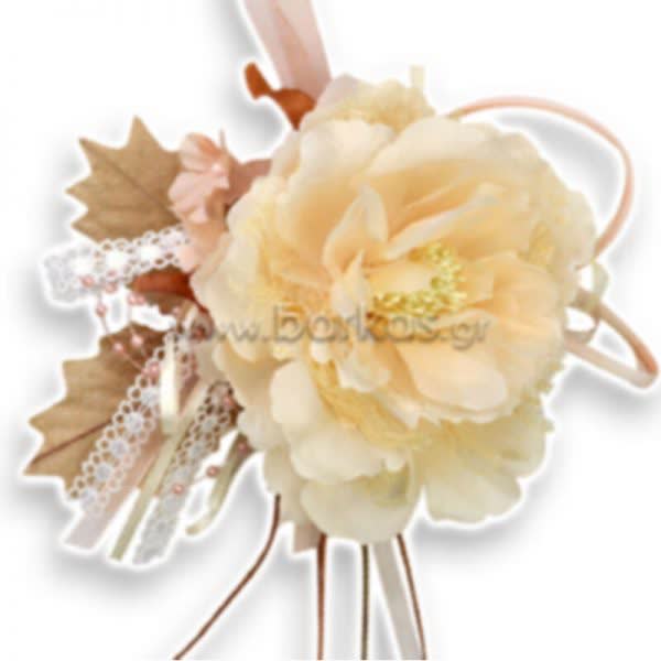 Τριαντάφυλλο με κορδέλα, πέρλες και δαντέλα σομών.