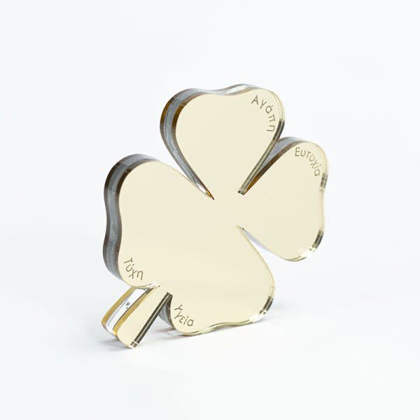 Τριφύλλι με ευχές σε plexiglass Χρυσό επιτραπέζιο
