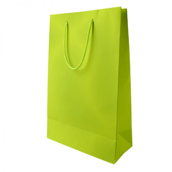 Τσάντα χάρτινη ματ πλαστικοποίησης, με κορδόνι Λαχανί 10x5x15 ( 25 τεμ. )