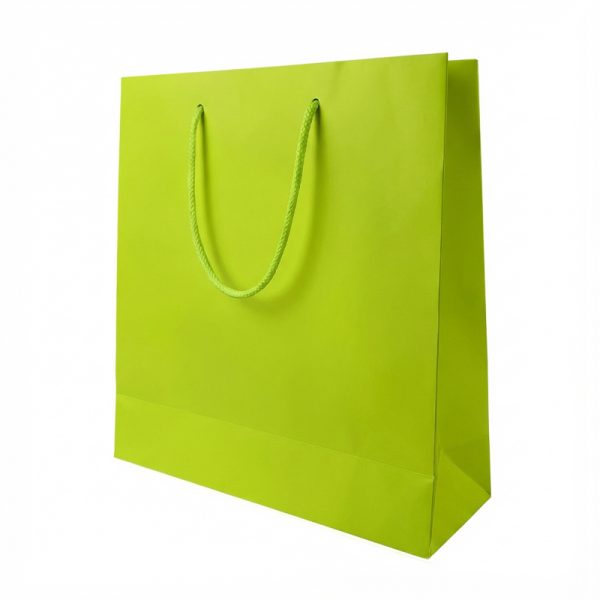 Τσάντα χάρτινη ματ πλαστικοποίησης, με κορδόνι Λαχανί 13x5x13 ( 25 τεμ. )