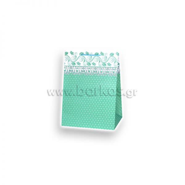Τσάντα χάρτινη με ματ πλαστικοποίηση και υφασμάτινο κορδόνι.