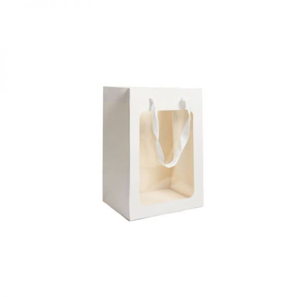 Τσάντα χάρτινη με παράθυρο λευκό 20 εκ. x 15 εκ. x 10 εκ. (12 τεμ.)