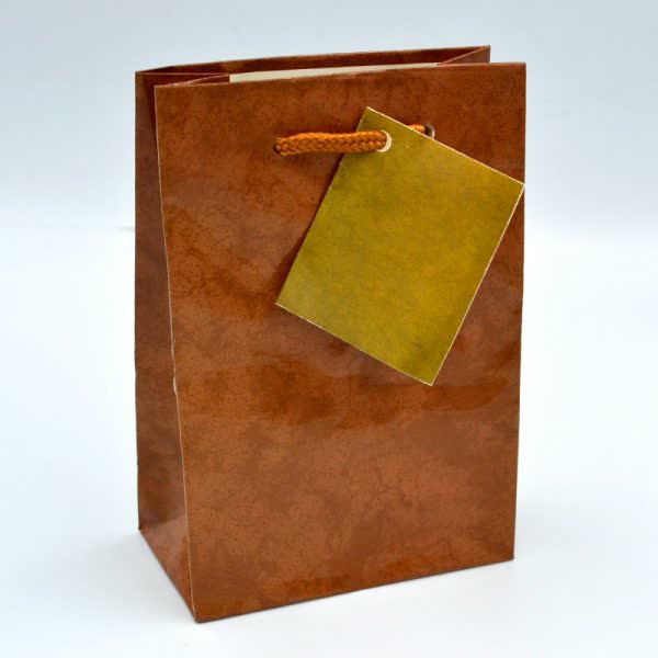 Τσάντα χάρτινη με πλαστικοποίηση και σχέδιο μάρμαρο καφέ 10x5x15 – 25τμχ.