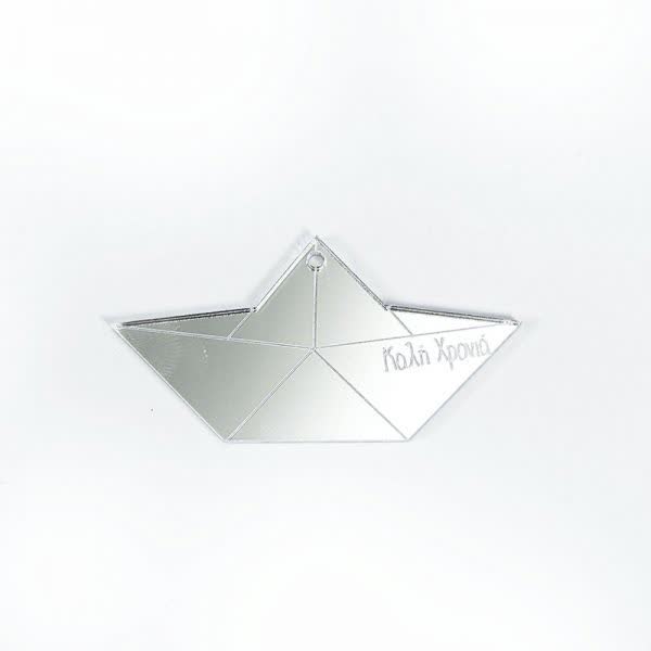 Βαρκούλα με ευχή Καλή Χρονιά σε plexiglass Ασημί με τρύπα 7 εκ. (1 τεμ.)