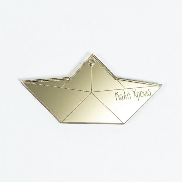 Βαρκούλα με ευχή Καλή Χρονιά σε plexiglass Χρυσό με τρύπα 7 εκ. (1 τεμ.)